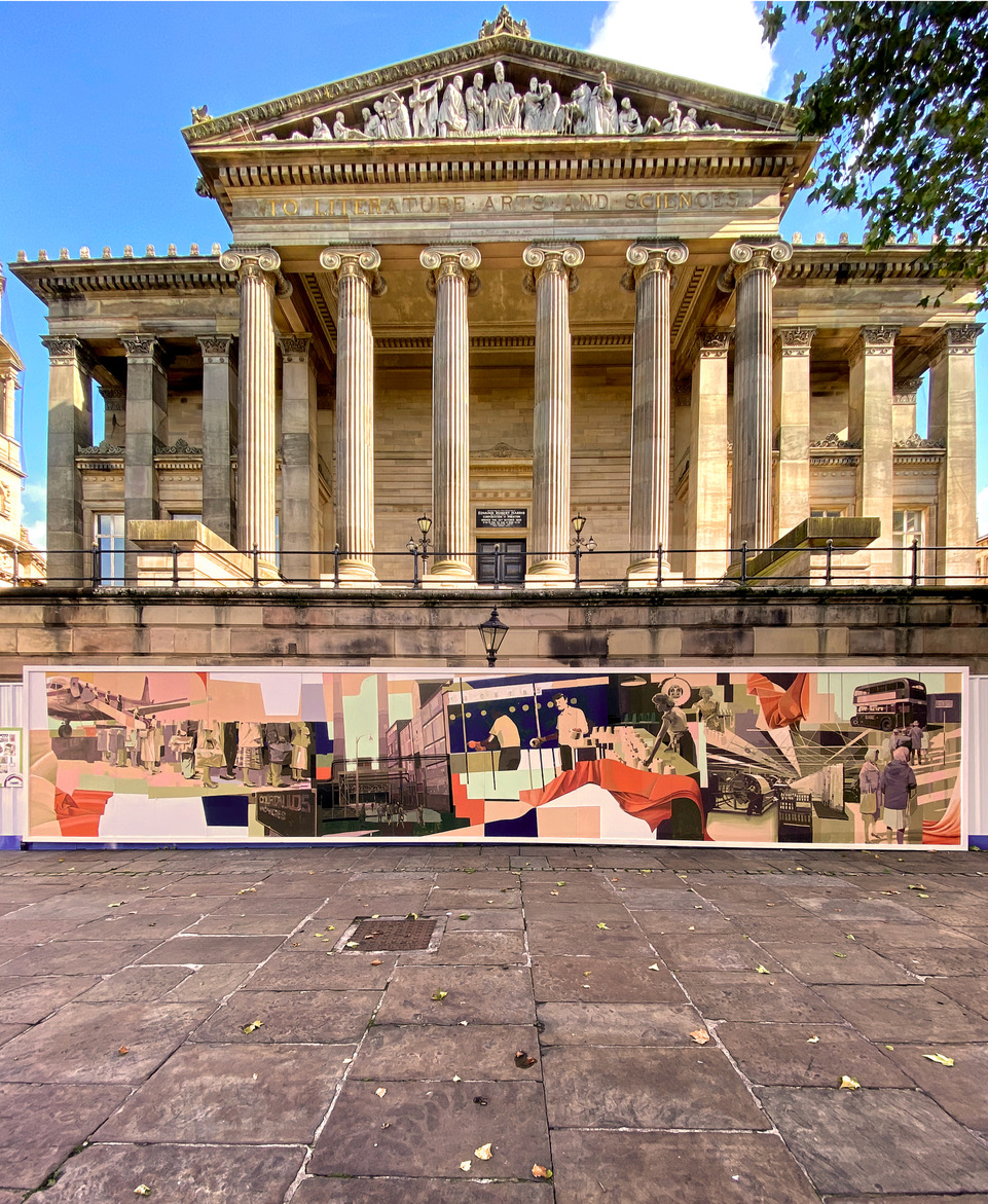 Gavin Renshaw ist ein bildender Künstler aus Preston, Großbritannien. Er schafft großformatige Wandgemälde, die sich direkt mit lokaler Geschichte, Stadtlandschaften und sozio-industriellen Erzählungen auseinandersetzen. Seine Arbeit ist teils forschungsorientiert, teils erfinderisch – er verwendet Archivmaterialien und vorbereitende Zeichnungen, die seine langfristigen Projekte und thematischen Sammlungen prägen.