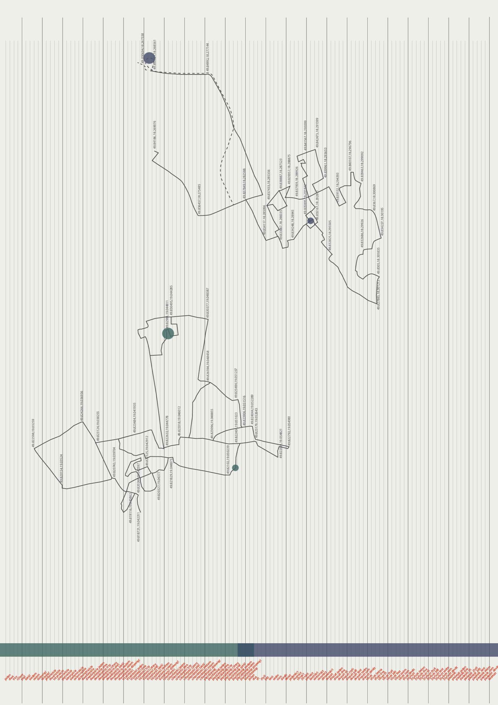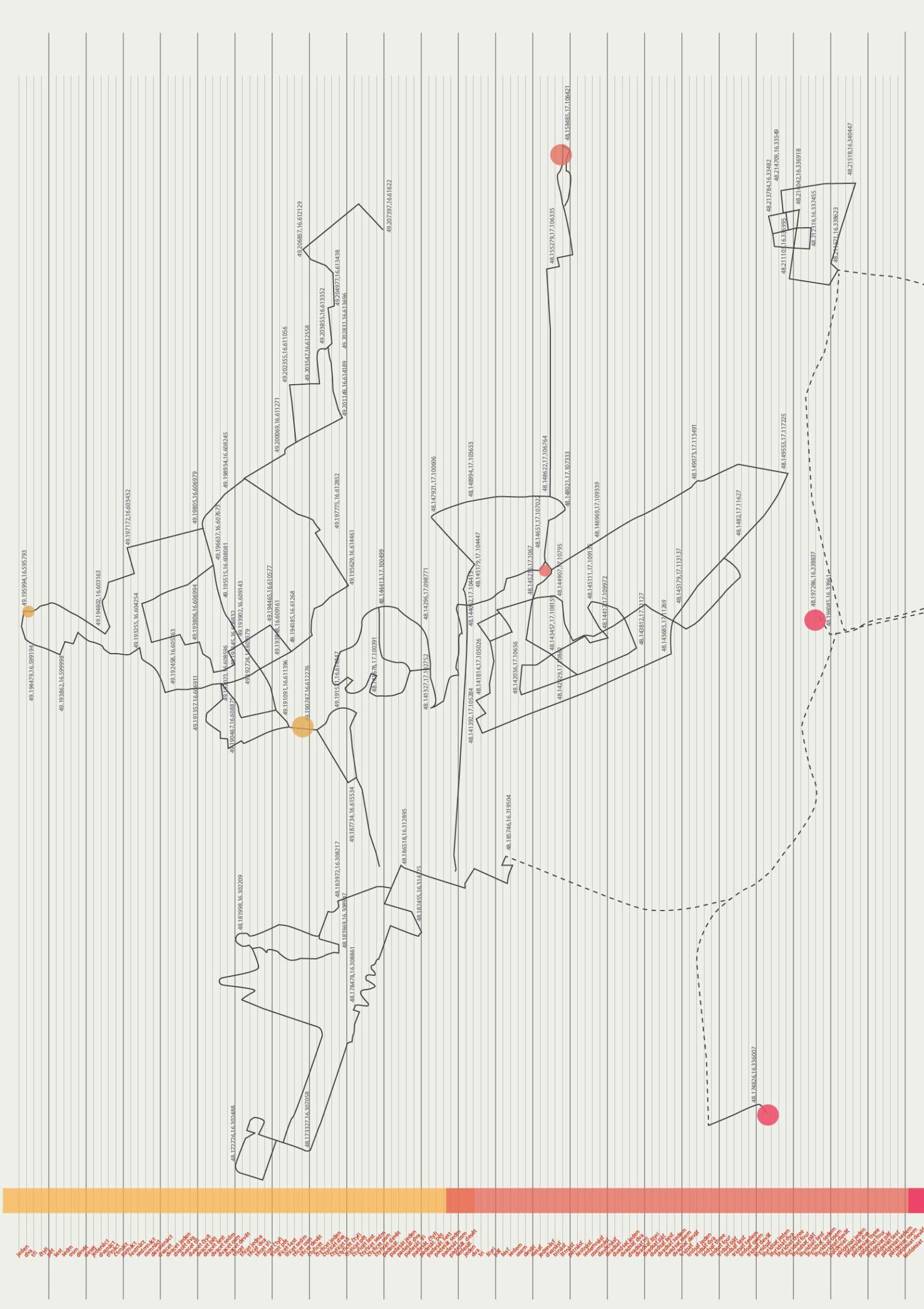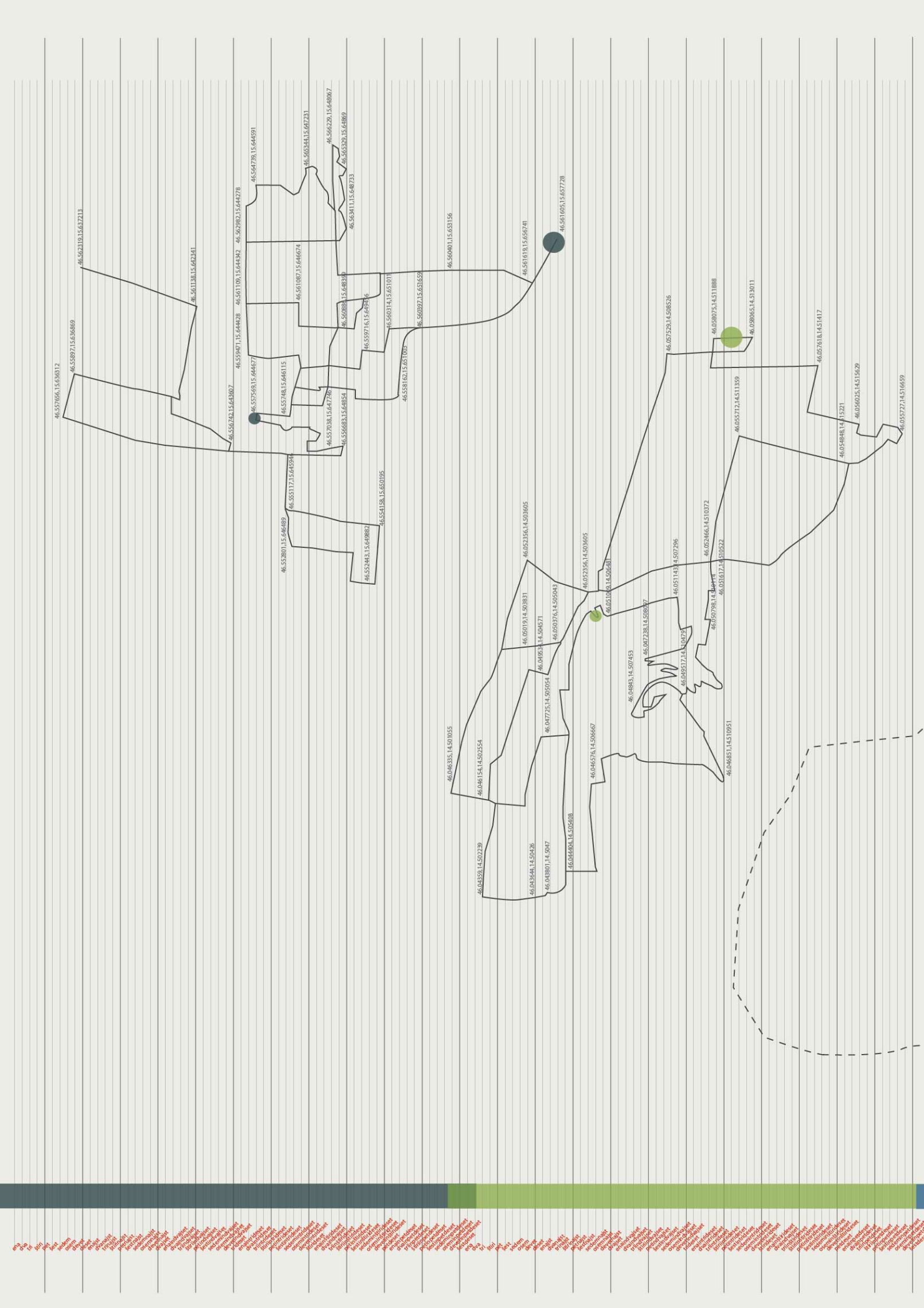 Mit „Kraków to Venice in 12 hours“ zeichnet Magda Stawarska eine Reise nach, die von Polen über die Tschechische Republik, die Slowakei, Österreich und Slowenien nach Italien führte. Stationen waren Krakau, Katowice, Bielsko-Biala, Ostrava, Brno, Bratislava, Wien, Graz, Maribor, Ljubljana, Triest und Venedig. Das Projekt fängt die einzigartigen klanglichen Charaktere dieser zwölf Städte ein und sucht dabei nach ihren Ähnlichkeiten und Unterschieden. Zugleich ist es ein persönlicher und subjektiver Audioreiseführer und ein Tagebuch von Feldaufnahmen, das die verschiedenen Orte über einen Zeitraum hinweg abbildet. Die Künstlerin porträtierte die Städte mit Stereomikrophonen. Zwei davon trug sie auf ihren Wegen in den Ohren, was ihr ermöglichte, das urbane Klangbild aus einer subjektiven Zeitperspektive nachzuzeichnen. Die Unauffälligkeit der Mikrophone gestattete auch die Aufnahme von authentischen Gesprächen, die hernach mit dem einmaligen Klangporträt der Stadt verwoben wurden. Die auf Straßen, Bahnhöfen, Plätzen und in Cafés aufgezeichnete Sprache ist ein zentrales Element der Arbeit, da sie den Übergang von einem Land ins nächste markiert. Im grenzfreien Schengenraum ist sie der einzige räumliche und zeitliche Orientierungspunkt. Das Zifferblatt einer Uhr dient der immersiven Mehrkanal-Klanginstallation als Kompass, wobei die zwölfstündige Komposition synchron zu der echten Reisezeit läuft. Die Plakate „50.06465,19.94498 to 45.441058,12.320845“ zeigen eine Landkarte, auf der die Aufnahmeorte von „Kraków to Venice in 12 hours“ verzeichnet sind. Als Fremde orientierte sich Stawarska-Beaven jeweils an den markanten Plätzen im Stadtraum, doch drängte ihr die jeweilige Stadt auch ihre Struktur auf. So weisen die Kartographien der Wege in jeder Stadt ein charakteristisches Muster auf. Geographische Breiten- und Längenangaben ermöglichen dem Publikum zusätzlich, die exakten Orte der Feldaufnahmen nachzuvollziehen. Das Projekt gibt es auch online als interaktive Plattform, auf der man sich durch den geographischen Raum bewegen und Beispiele der Feldaufnahmen und Kompositionen nachhören kann.