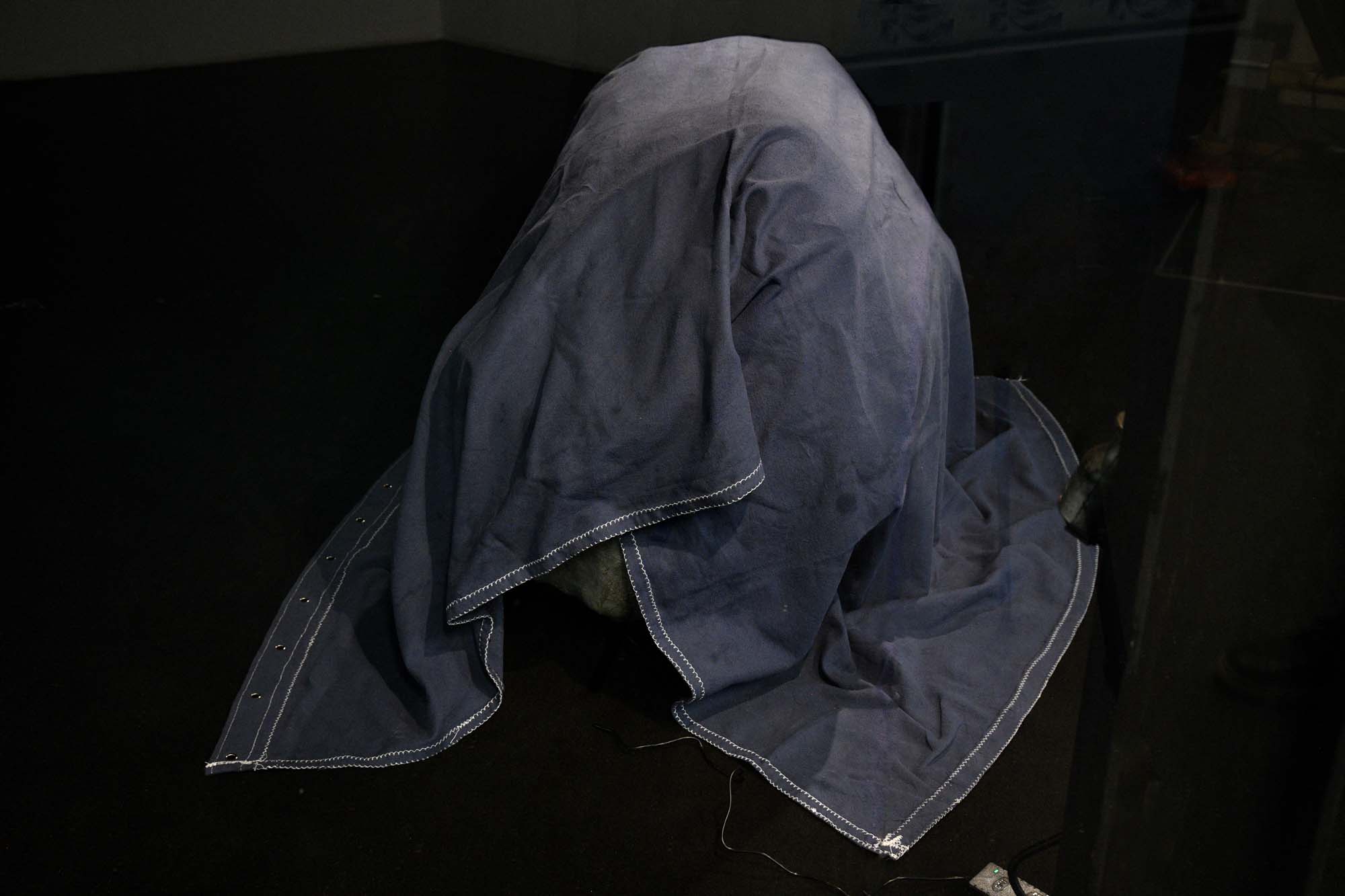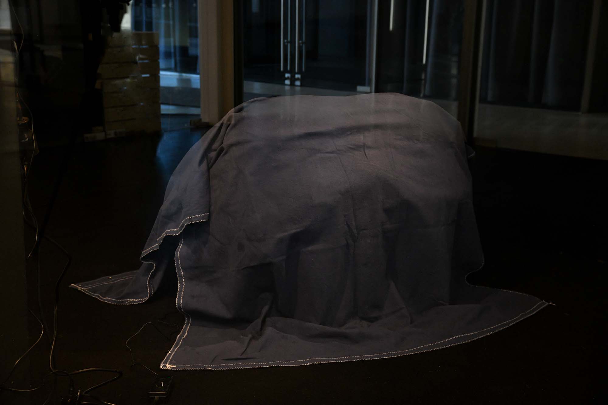 The object is an artificial replica of a boulder. It is not made of rock, but of silicone, a soft, natural-feeling material. It is not of geological origin, nor does it share the weight or the coldness of natural stone, and it ages differently. The object is not moving in the space. It merely generates an internal movement in the form of pulsing. This movement has no funtion nor does it convey any information. It simulates activity without performing any action or reacting to anything.